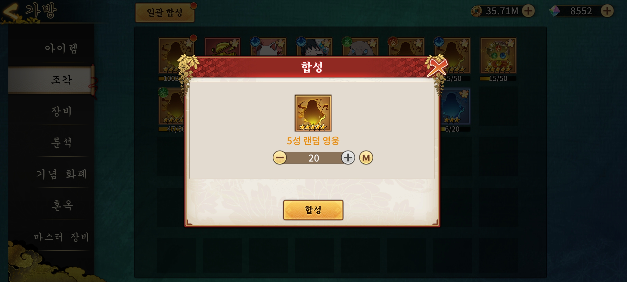 저번에 5성 조각 1000조각 모아서 20뽑 진행해 봤다. 혹시나 ssr이 뜰 수도 있으니까..